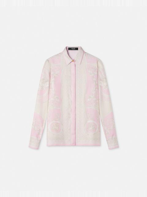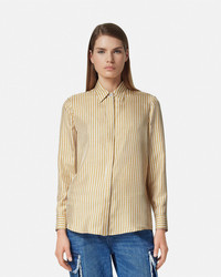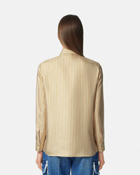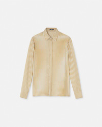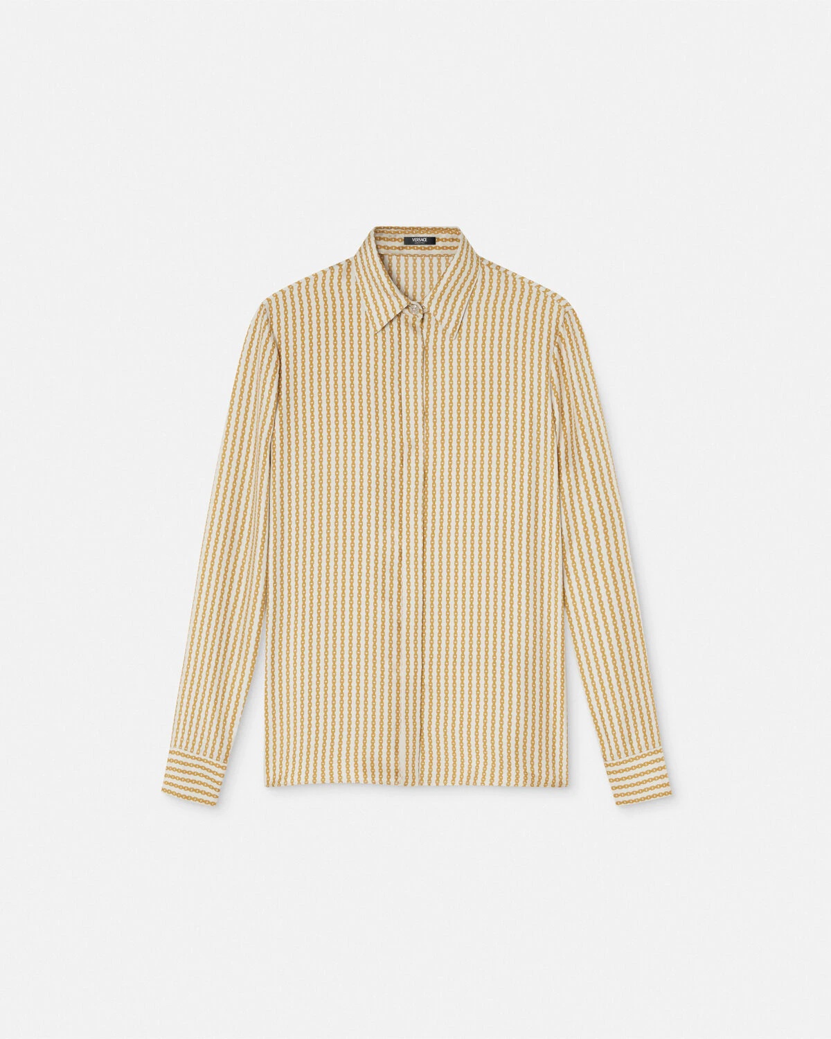 DETAILS This classic longsleeved shirt is made from silk twill and features an accent Medusa button and a pinstriped chain print - Pinstripe Chain print - Medusa hardware - Long sleeves - Pointed collar - Concealed button placket - Buttoned cuffs - Outer composition: 100% Silk Item: 1001360-1A13367_5E490 SIZE & FIT - The model is 5'10" / 1.79 m tall and wears size 38 IT