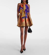 Pleated printed satin miniskirt