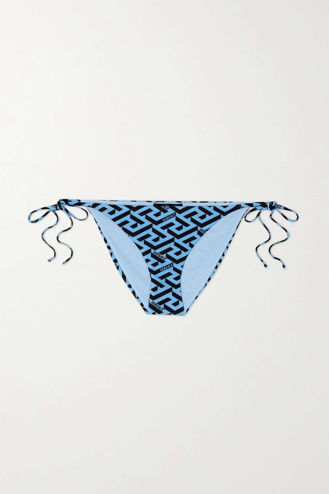 - Sky-blue and black stretch-polyester - Ties at sides - 78% polyester, 22% elastane - Hand wash - Lotion, sunscreen, oil and chlorine can cause discoloration of this item; this is not a manufacturing defect. Please follow care instructions to keep your swimwear in the best condition