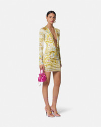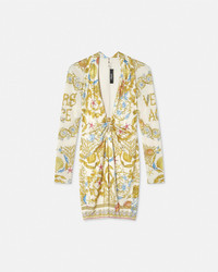 DETAILS This longsleeved mini dress in liquid features a draped deep Vneckline with an accent Safety Pin - Safety Pin hardware - Long sleeves - V-neckline - Concealed back zip closure - Outer composition: 100% Viscose - Lining: 100% Viscose Item: 1020822-1A15210_5K640 SIZE & FIT - The model is 5'10" / 1.79 m tall and wears size 38 IT