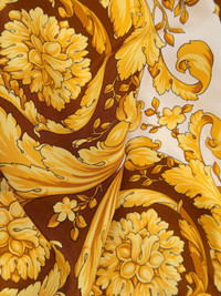 printed scarf Highlights - Golden brown - Square shape - Contrasting border - Handkerchief hem Made in Italy Composition Silk 100% SIZE & FIT Measurement LENGTH 35.43 in(90 cm) WIDTH 35.43 in(90 cm)