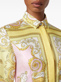 Baroque-print belted mini dress Highlights - Light pink - Baroque print - Point collar - Long sleeves - Button fastening - Belt Made in Italy Composition Silk 100% Washing instructions Read Manufacturer Guidelines