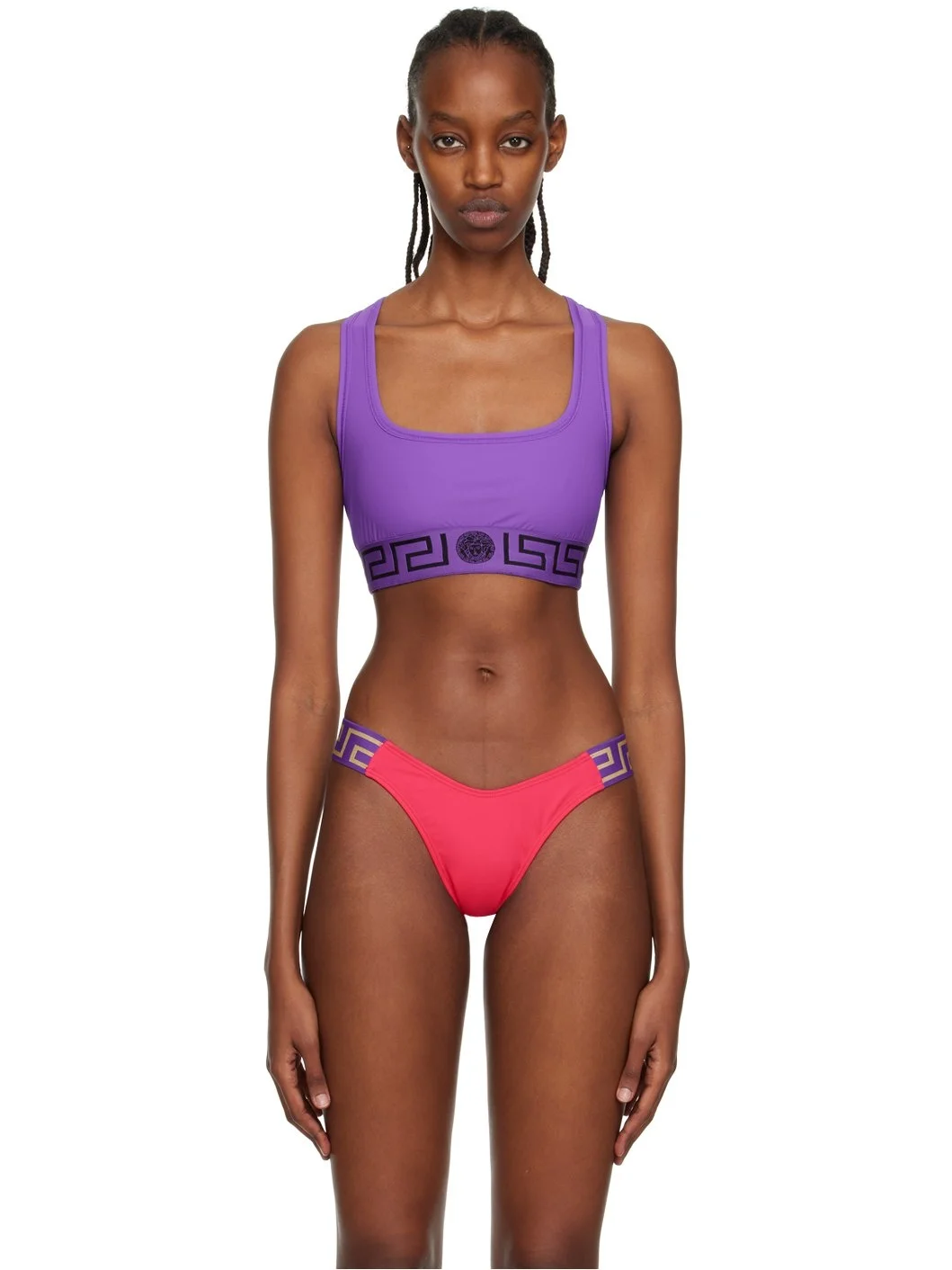 Purple Greca Border Sport Bra