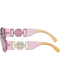 Rectangular transparent acetate-frame sunglasses. · Brown lenses · 100% UVA/UVB protection, category 2 · Integrated nose pads · Fluted logo hardware at temples · Includes case · Size: 53.18 140 Supplier color: Multicolor Acetate. Made in Italy 252404F005011