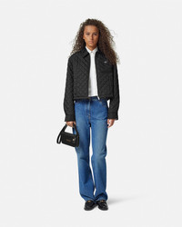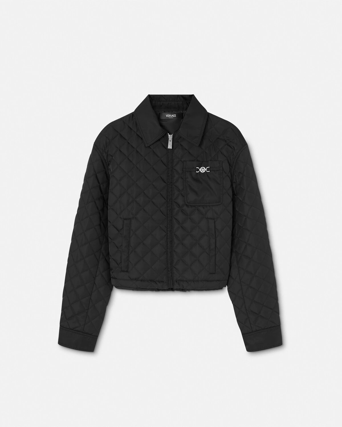 DETAILS A lightly padded quilted blouson jacket in nylon featuring an accent Medusa 95 hardware on the chest pocket - Medusa '95 hardware - Long sleeves - Pointed collar - Front zip closure - Chest patch pocket - Side pockets - Buttoned cuffs - Outer composition: 100% Nylon - Lining: 100% Polyester - Trim: 100% Nylon - Padding: 72% Polyester, 28% Silk Item: 1018227-1A13519_1B000 SIZE & FIT - The model is 5'10" / 1.79 m tall and wears size 38 IT