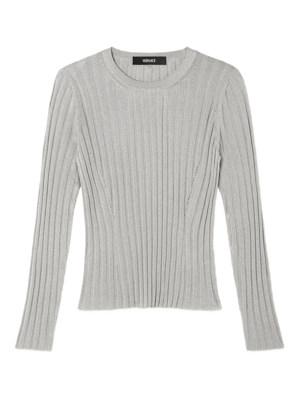 ribbed crew-neck sweater Highlights - Light grey - Ribbed knit - Round neck - Long sleeves - Medusa detail Made in Italy Composition Viscose 58%, Cotton 42% Washing instructions Read Manufacturer Guidelines