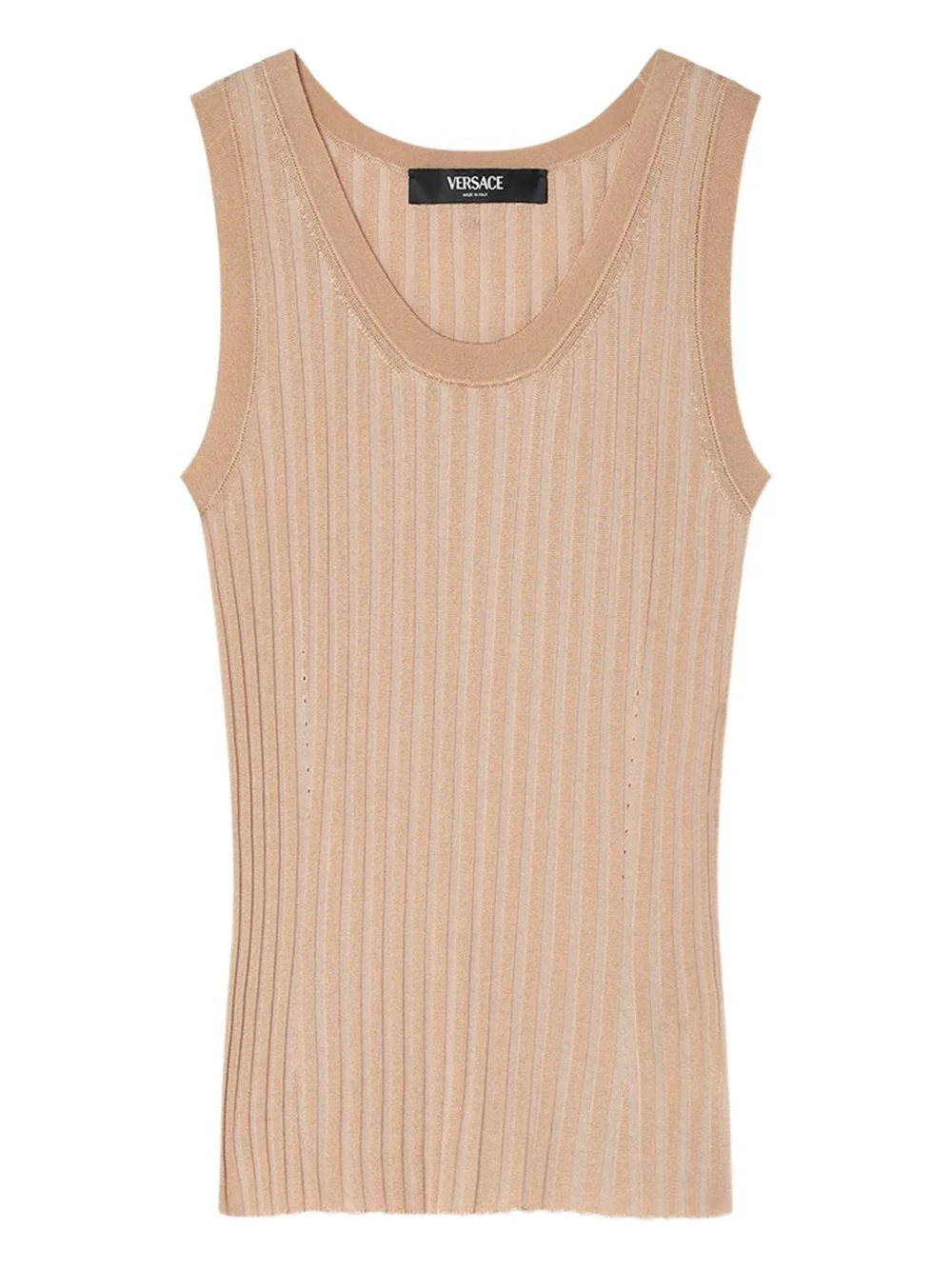 ribbed sleeveless top Highlights - Sand beige - Ribbed knit - Round neck - Sleeveless Imported Composition Lining: Viscose 91%, Nylon 7%, Polyurethane 2% Outer: Viscose 58%, Cotton 42% Washing instructions Read Manufacturer Guidelines