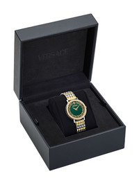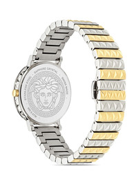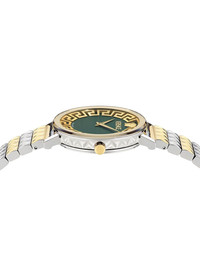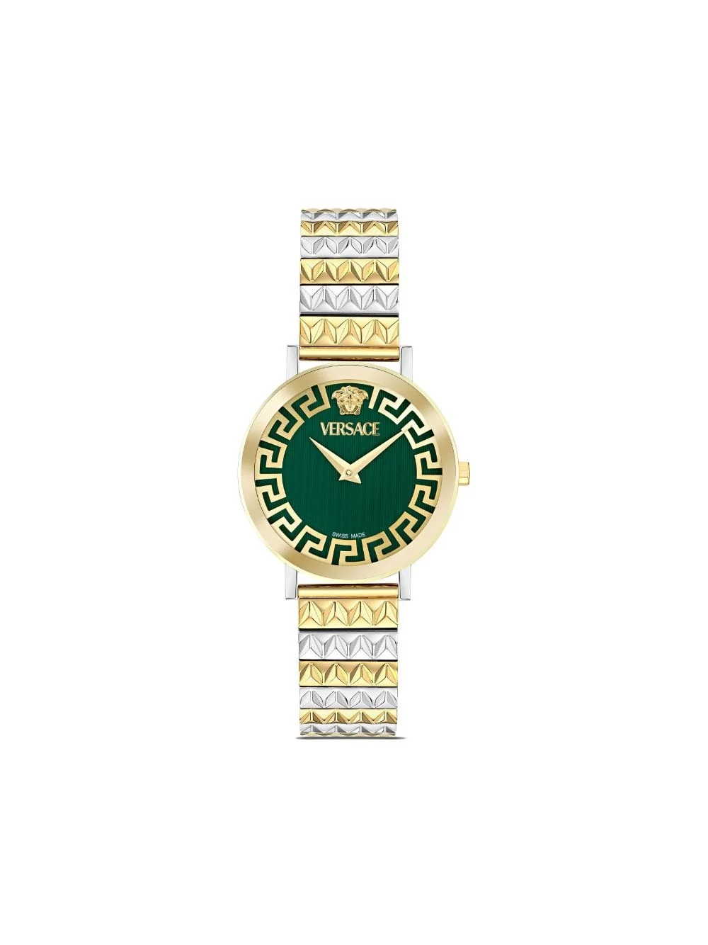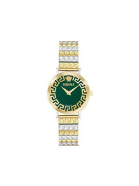 Deadalus 35mm Highlights - 35mm - Forest green - Round face - Baton hands - Signature greca detailing - Screw-down crown - Two-tone bracelet - Folding clasp - Quartz movement Imported SIZE & FIT Measurement DIAMETER 1.37 in(3.5 cm)