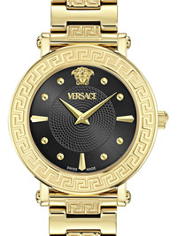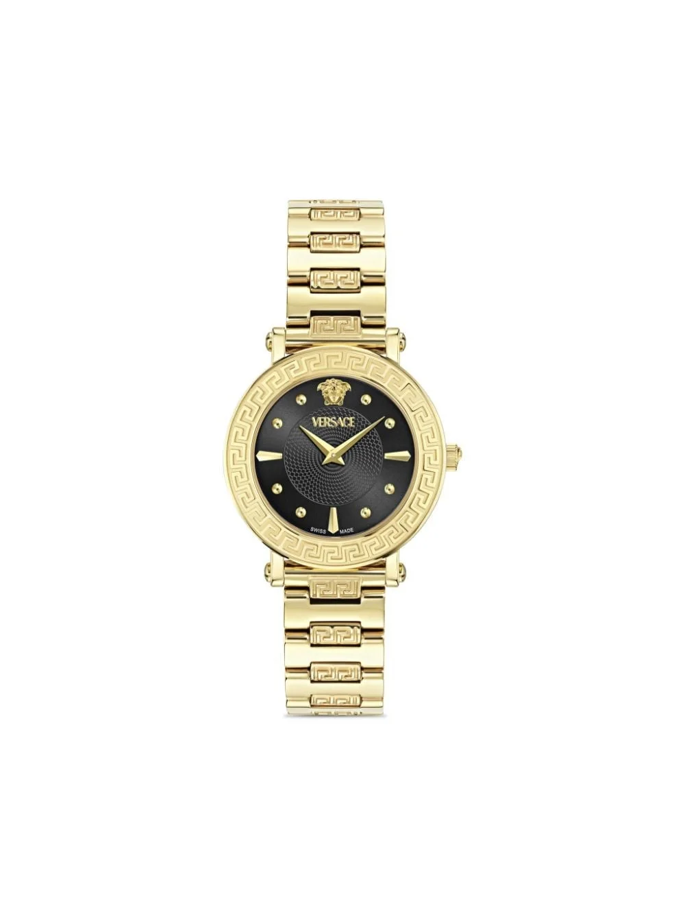 Greca Sphere 35mm Highlights - 35mm - Black - Stainless steel - Round face - Signature greca detailing - Index dial - Baton hands - Screw-down crown - Stainless steel link bracelet - Folding clasp - Quartz movement Imported SIZE & FIT Measurement DIAMETER 1.37 in(3.5 cm)
