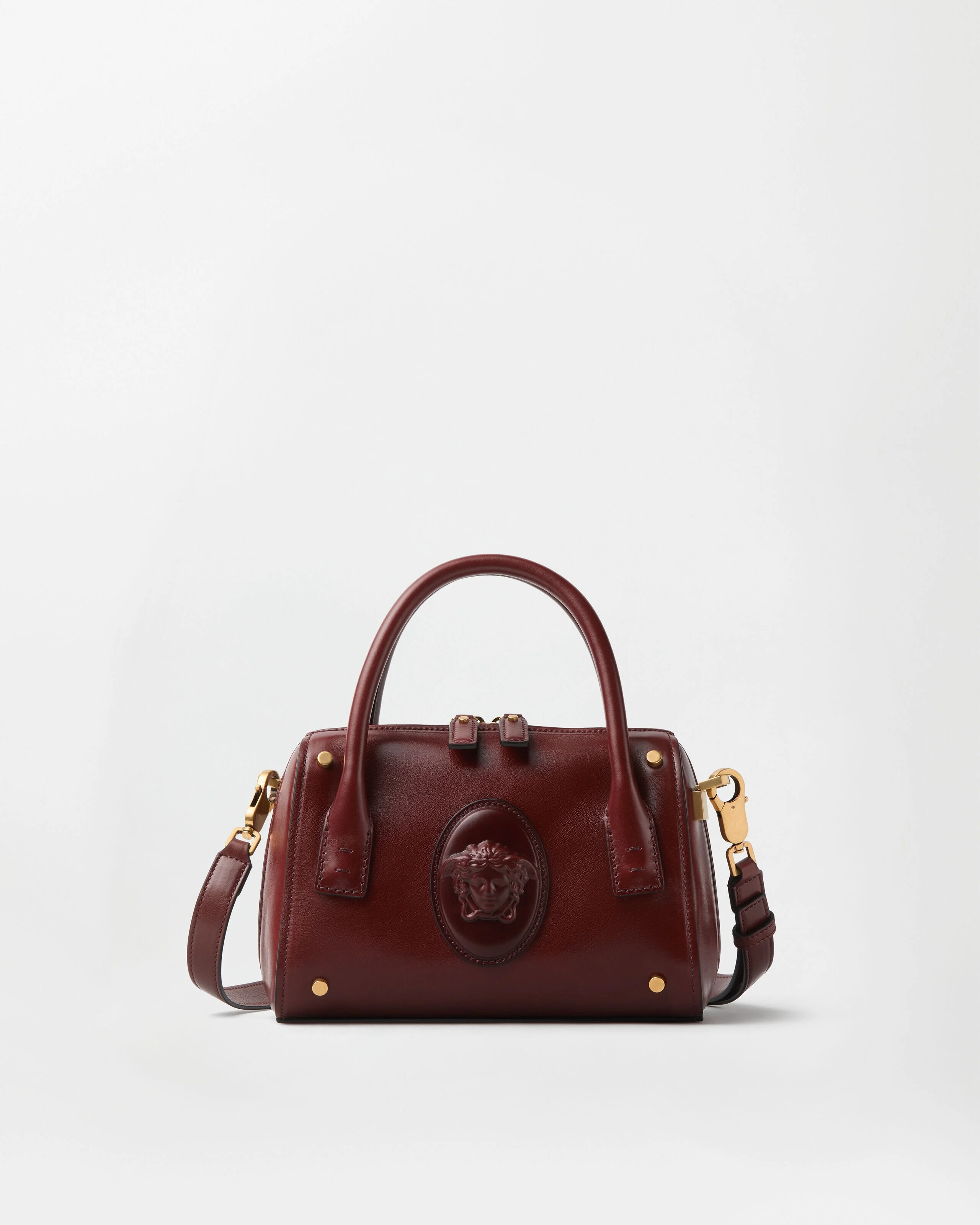 This small Roomy Boston bag is crafted from calf leather, defined by a central Medusa Cameo leather patch—a 3D rendition which captures the depth of Medusa's eyes and winged details in her hair. The classic day-to-day accessory is contrasted with metal rivets, and can be carried in-hand or crossbody by the detachable leather shoulder strap. - Medusa Cameo leather patch - Top handles - Two-way zip-around closure - 1 interior slip pocket - Detachable and adjustable shoulder strap - Outer composition: 100% Calf leather - Lining: 100% Lambskin - Trim: 100% Calf leather Size & Fit - L9.1 x W4.3 x H6.3" / L23 x W11 x H16 cm - Handle drop: L3.1" / L8 cm - Shoulder strap: L48.4" / L123 cm - Shoulder strap drop: L22.8" / L58 cm Item: 1024028-1A17453_DTU_UNICA_1NL0J__
