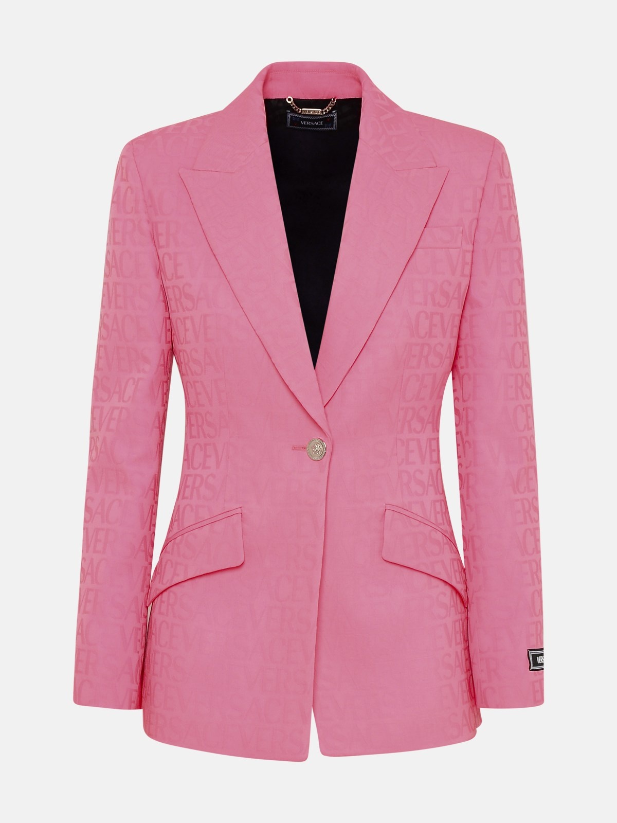 Manufacture code: 1009095 1A08198 1PN50 Retail code: 1009095 1A08198 1PN50 all-over versace pattern, notched lapels, front Medusa button closure, chest welt pocket, front lapel pockets, a single back split Material: 100% Virgin wool Made in Italy