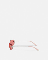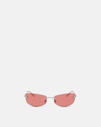 DETAILS In a rimless design these ovalshaped sunglasses are detailed with Medusa studs at the front and feature sleek metal temples with a lasered Versace logo on a cylindrical element - Medusa hardware - Versace Logo motif - Adjustable nose pads - Frame color: Silver - Temple color: Silver - Lens color: Pink - Frame: Metal - Temple: Metal Item: O2279-O10008460_ONUL SIZE & FIT - Lens: W2.4 x H1.4" / W60 x H34.5 mm - Bridge: 0.7" / 18 mm - Temple: 5.3" / 135 mm