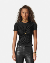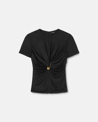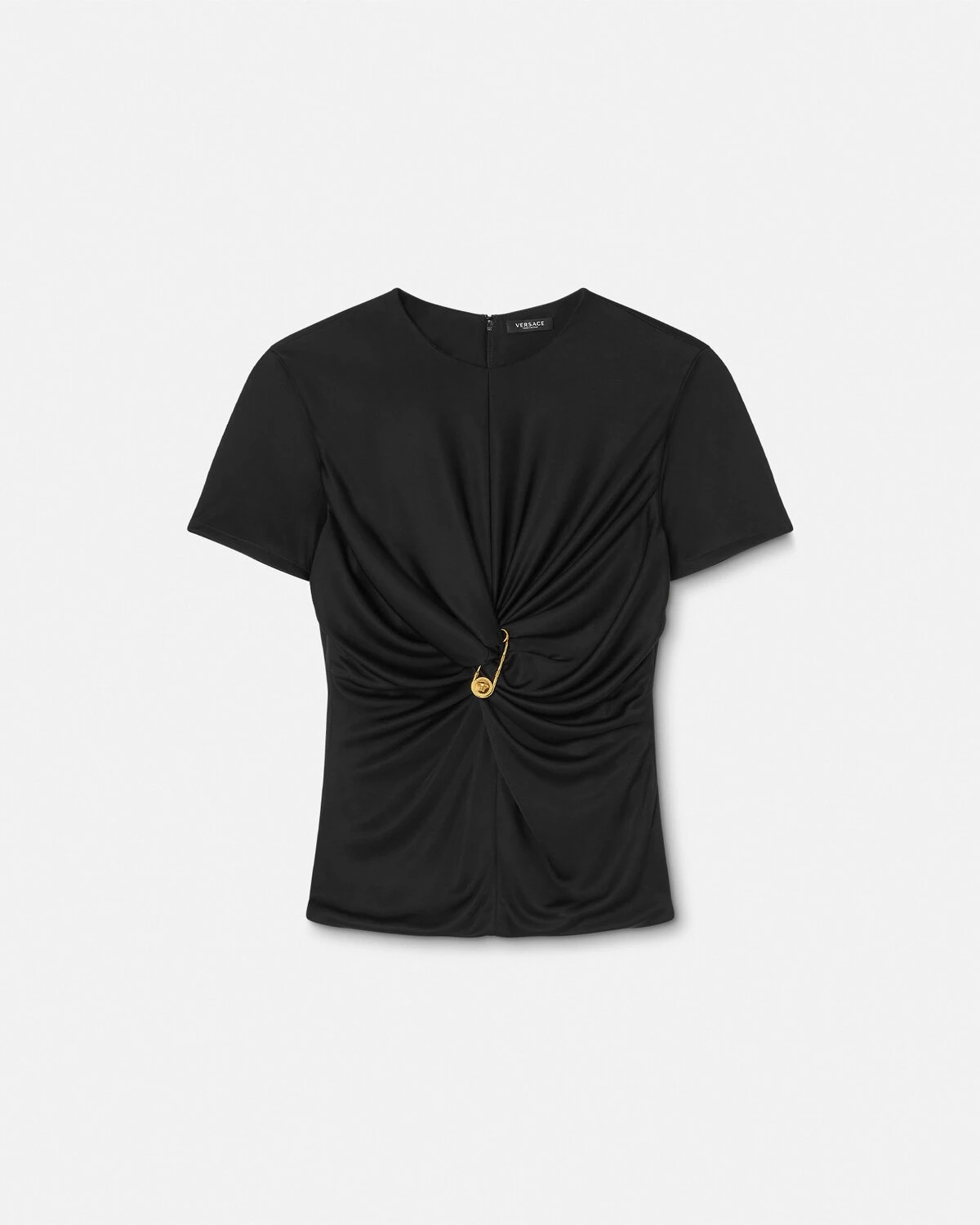 DETAILS This slimfit shortsleeved top in liquid jersey is gathered by the Houses signature Safety Pin - Safety Pin hardware - Short sleeves - Round neckline - Outer composition: 100% Viscose - Lining: 100% Viscose - Fabric made from responsibly sourced viscose Item: 1018081-1A12497_1B000 SIZE & FIT - The model is 5'10" / 1.79 m tall and wears size 38 IT