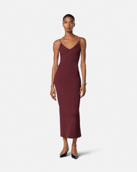 A stretch, slim, ribbed-knit slip midi dress with a V-neckline and accent Safety Pin hardware on the thin shoulder straps. - Safety Pin hardware - Sleeveless - Shoulder straps - V-neckline - Outer composition: 83% Viscose, 17% Polyester - Fabric made from responsibly sourced viscose Size & Fit - The model is 5'10" / 1.79 m tall and wears size 38 IT Item: 1018586-1A12699_1RD90