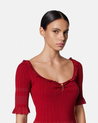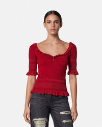 DETAILS A shortsleeved top in a micro cableknit stretch wool with ruffled trims and a removable signature Safety Pin hardware at the front - Safety Pin hardware - Short sleeves - Scoop neckline - Outer composition: 53% Pure virgin wool, 28% Viscose, 17% Nylon, 2% Elastane - Trim: 85% Viscose, 13% Nylon, 2% Elastane Item: 1020938-1A14744_1RC40 SIZE & FIT - The model is 5'10" / 1.79 m tall and wears size 38 IT