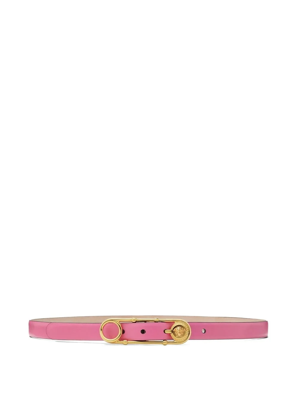 Safety Pin leather buckle belt Highlights - Pink - Gold-tone buckle - Saftey pin motif - Multiple punched holes - Adjustable length Made in Italy Composition Calf Leather 100%
