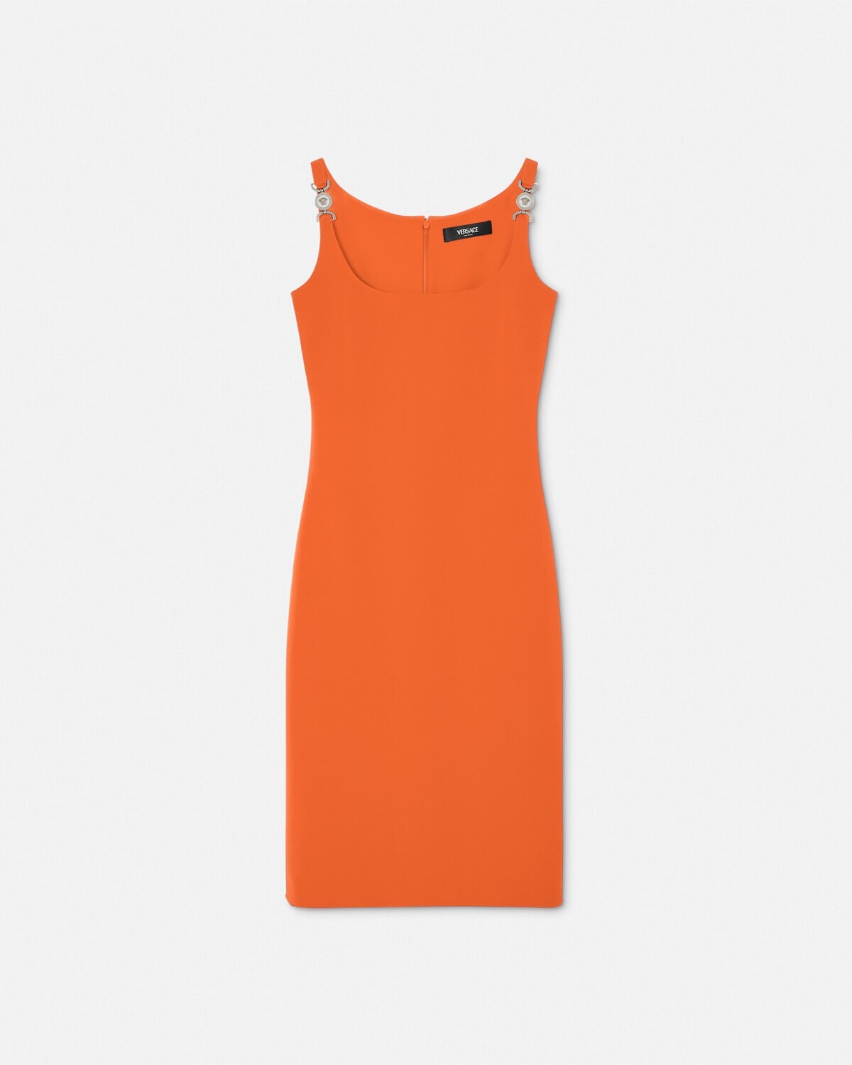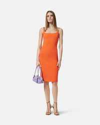DETAILS A slim fitted midi dress in in stretchcady featuring accent Medusa 95 hardware on the shoulder straps - Medusa '95 hardware - Sleeveless - Scoop neckline - Concealed back zip closure - Outer composition: 95% Viscose, 5% Elastane - Lining: 75% Acetate, 25% Silk - Fabric made from responsibly sourced viscose and acetate Item: 1016410-1A12825_1RC10 SIZE & FIT - The model is 5'8" / 1.75 m tall and wears size 38 IT