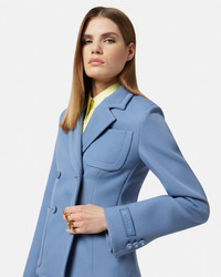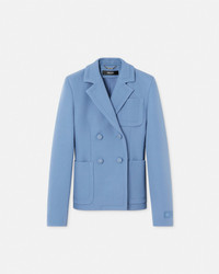 DETAILS This longsleeved doublebreasted blazer is crafted in grain de poudre wool and stretch bonded scuba The structural design has a notched lapel and features tonal buttons with accent Medusa studs complete with a jacquard tailoring label on the sleeve Its fully lined in a lightweight crpe - Medusa hardware - Tailoring label - Long sleeves - Notched lapels - Front button closure - Front patch pockets - Buttoned cuffs - Outer composition: 51% Polyester, 47% Pure virgin wool, 2% Elastane - Embroidery: 100% Polyester - Lining: 100% Cupro Item: 1019505-1A14296_1VF00 SIZE & FIT - The model is 5'10" / 1.79 m tall and wears size 38 IT