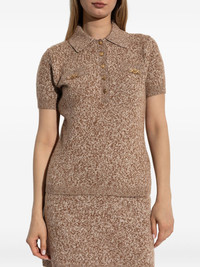 knit polo top Highlights - Brown - Short sleeves - Button placket - Logo detailing - Collared neckline - Ribbed trim Made in Italy Composition Wool 56%, Cashmere 24%, Silk 20% Washing instructions Read Manufacturer Guidelines