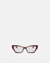 DETAILS These cateye optical frames in acetate are detailed with a signature Versace Logo on the temples - Versace Logo motif - Frame color: Transparent burgundy - Temple color: Transparent burgundy - Lens color: Transparent - Frame: Acetate - Temple: Acetate Item: O3373U-O551254_ONUL SIZE & FIT - Lens: W2.1" x H1.4" / W54 x H36 mm - Bridge: 0.7" / 17 mm - Temple: 5.5" / 140 mm