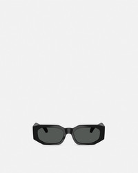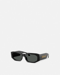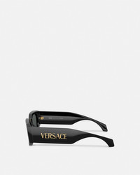 DETAILS These injected rectangular sunglasses are detailed with an applied Versace Logo lettering on the temples - Versace Logo lettering - Frame colour: Black - Temple color: Black - Lens colour: Dark grey - Frame: Injected - Temple: Injected Item: O4489U-OGB18755_ONUL SIZE & FIT - Lens: W2.2" x H1.4" / W55 x H35.1 mm - Bridge: 0.7" / 18 mm - Temple: 5.5" / 140 mm