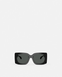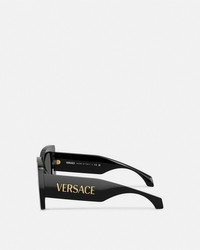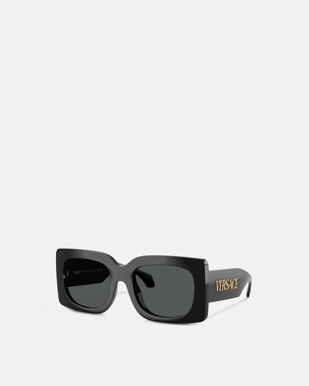 DETAILS These injected squared sunglasses are detailed with a signature Versace Logo on the temples - Versace Logo lettering - Frame color: Black - Temple color: Black - Lens color: Dark gray - Frame: Injected - Temple: Injected Item: O4496U-OGB18754_ONUL SIZE & FIT - Lens: W2.1" x H1.7" / W54 x H44.4 mm - Bridge: 0.8" / 21 mm - Temple: 5.5" / 140 mm