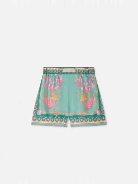 DETAILS Pyjamastyle silk twill shorts featuring an Underwater Barocco print with shell coral and starfish motifs detailed with a jacquard 90s Vintage Logo label on the elastic waistband - Underwater Barocco print - '90s Vintage Logo label - Side pockets - Elastic waistband - Outer composition: 100% Silk - Lining: 75% Acetate, 25% Silk Item: 1020416-1A14746_5K640 SIZE & FIT - The model is 5'10" / 1.79 m tall and wears size 38 IT