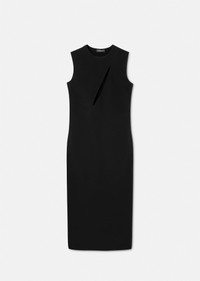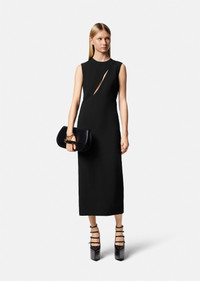 A straight sleeveless dress featuring a statement slash at the chest and back, complete with a side slit. DETAILS & CARE - Sleeveless - Round neckline - Side slit - Outer composition: 74% Acetate, 26% Viscose - Lining: 75% Acetate, 25% Silk - Do not wash - Do not bleach - Do not tumble dry - Cool iron - Delicate dry clean SIZE & FIT - All sizes fit Italian standards - The model is 5'7" ft tall and wears size 38 IT