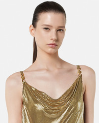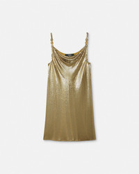 DETAILS A sleeveless mini dress featuring a draped cowl neckline crafted from the iconic metal mesh The silhouette is accented by Medusa 95 hardware on the shoulder straps The silhouette comes with a slip dress underneath - Medusa '95 hardware - Sleeveless - Cowl neckline - Slip on - Composition: 100% Metal - Lining: 75% Acetate, 25% Silk Item: 1016119-1A14829_1X240 SIZE & FIT - The model is 5'11" / 1.80 m tall and wears size 38 IT