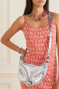 EDITORS'NOTES Versace's 'Repeat' bag has a '90s biker twist. Made from mirrored cracked-leather, it's adorned with statement zips and an exaggerated silver-tone 'Medusa' head. You'll love how the shape tucks neatly into the crook of your arm. SIZE & FIT This item’s measurements are: - Min. Strap Length: 83cm / 32.7in - Handle Drop: 14cm / 5.5in - Depth: 5cm / 2in - Max. Strap Length: 113cm / 44.5in - Height: 19cm / 7.5in - Width: 28cm / 11in DETAILS & CARE - Silver mirrored cracked-leather (Lamb) - Two-way zip fastening along top - Comes with dust bag - Weighs approximately 1.5lbs/ 0.7kg