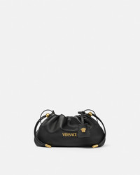 The Versace Tag mini bag is crafted from ultra-soft nappa leather with a drawstring closure. The versatile accessory is accented by metal Versace lettering and can easily be carried in-hand as a pouch or worn crossbody by detachable and adjustable leather strap. A removable leather tag keychain with Medusa hardware completes the design. - Medusa hardware - Versace Logo lettering - Drawstring and magnetic closure - Detachable and adjustable shoulder strap - Removable keychain tag - Outer Composition: 100% Lambskin - Lining: 100% Polyester - Trim: 100% Lambskin Size & Fit - L11.8 x W1.2 x H6.5" / L30 x W3 x H16.5 cm - Shoulder strap drop: 26-11-11.8" / 28-30 cm - Approximate weight: 7.1 oz / 0.2 kg Item: 1021699-1A13171_DTU_UNICA_1B00V__