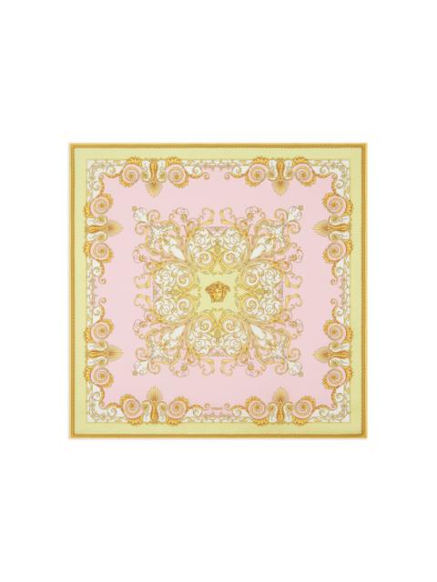 Spring Barocco printed silk scarf Highlights - Yellow and pink - Silk - Spring barocco print - Hand-rolled edges - Square shape - This piece can be styled in multiple ways. Imported Composition Silk 100% SIZE & FIT Measurement LENGTH 35.43 in(90 cm) WIDTH 35.43 in(90 cm)