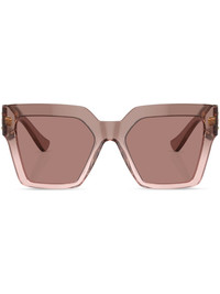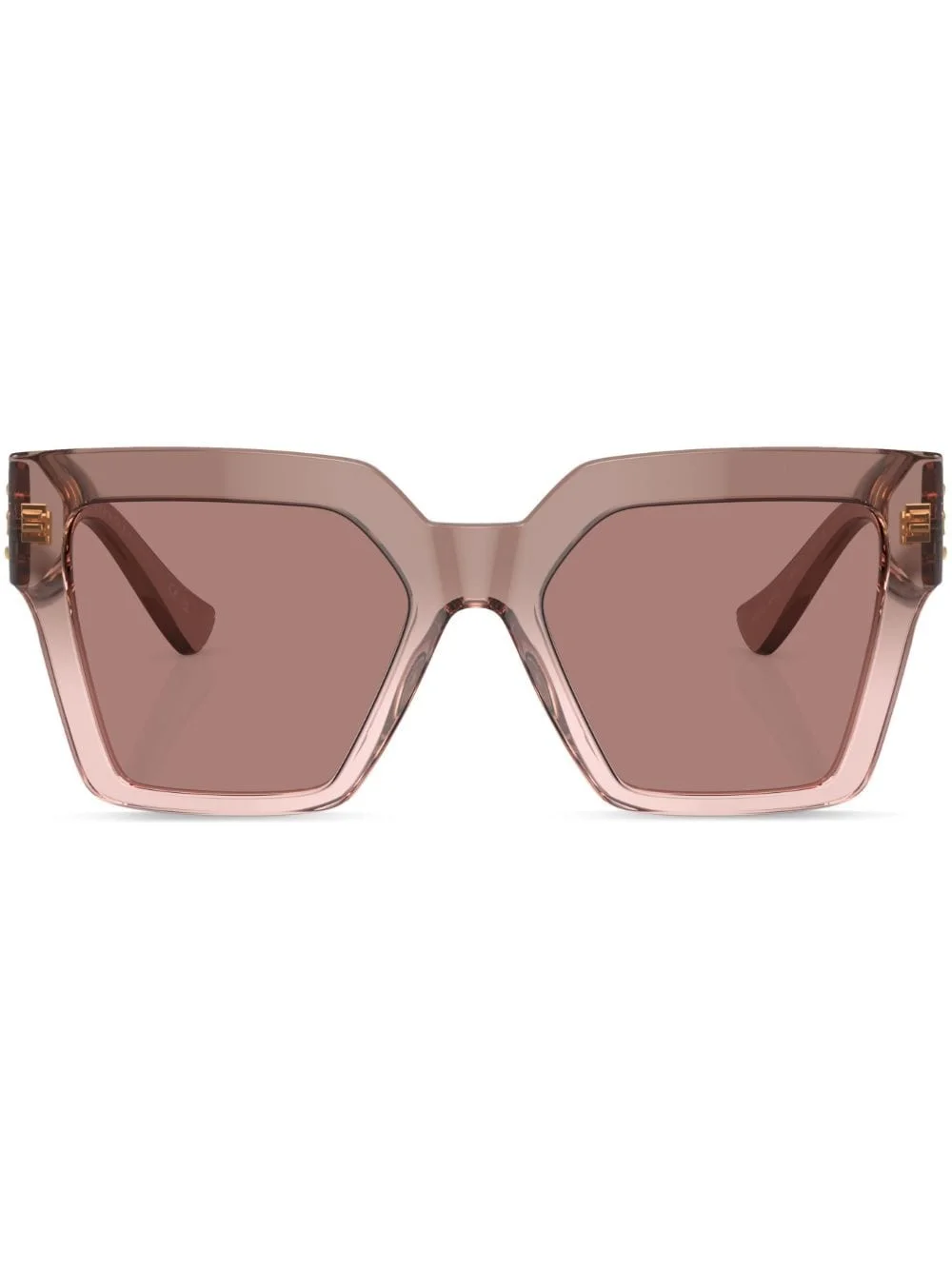 square-frame sunglasses Exemplifying the brand's distinctive opulence, these Versace Eyewear sunglasses are adorned with a gold-tone Medusa Head plaque at the temples. Crafted in Italy, they feature an oversized square frame that imparts a touch of glamour. Highlights - Blush pink - Acetate - Transparent design - Square frame - Pink tinted lenses - Medusa plaque detail - Logo plaque at the arm - Curved arms - Curved tips - These glasses come with a protective case. Made in Italy Composition Acetate 100%