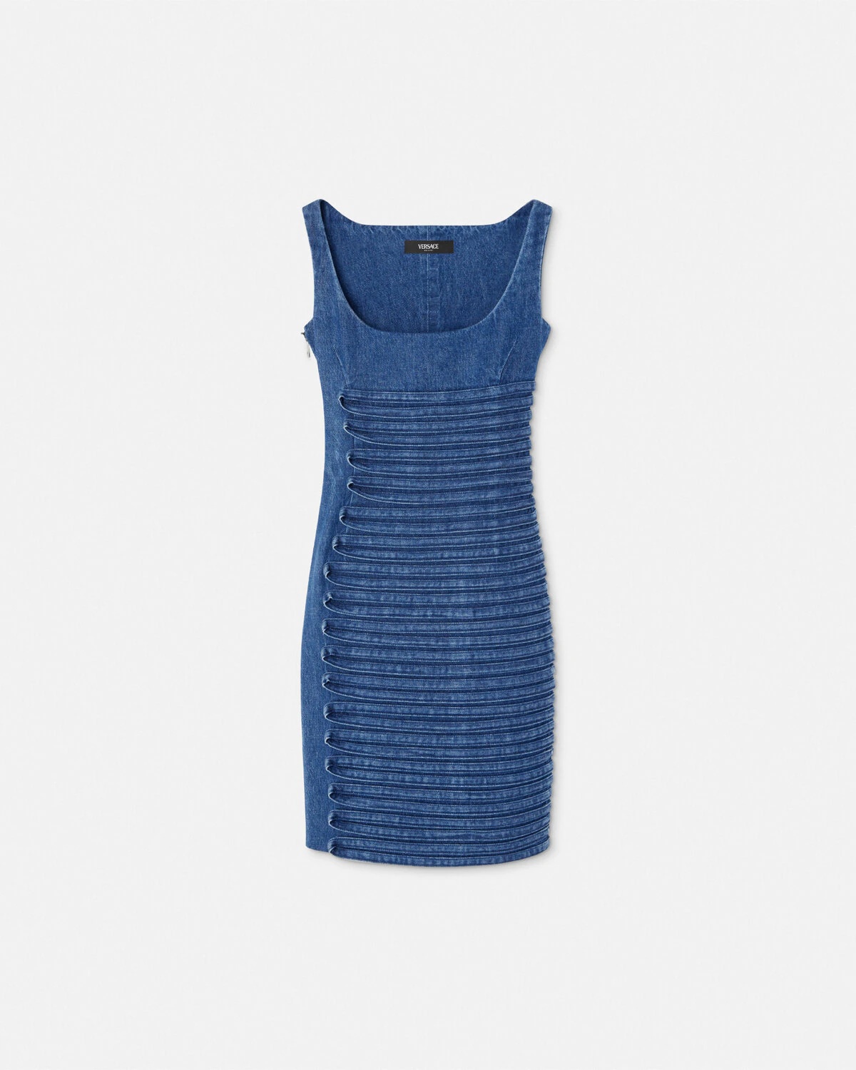 DETAILS A fitted mini dress with a scoop neckline in a mediumwash denim featuring decorative curved panels that follow the form - Sleeveless - Scoop neckline - Side zip closure - Outer composition: 100% Cotton Item: 1018675-1A13346_1D800&sc_eh=9699fe7bc1cefe221&sc_lid=699296523&sc_llid=291989&sc_src=email_7346627&sc_uid=YTbXMxyGDc&wt_mc=USA.e-mail.newsletter.mail_20250208.20250208_1610_20250208_RTW_W_US.IMAGE%20md_1108399.png SIZE & FIT - The model is 5'10" / 1.79 m tall and wears size 38 IT