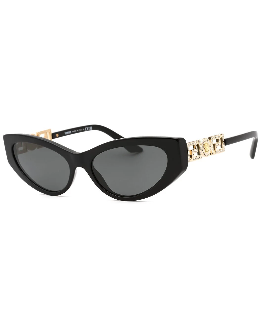 - About the brand: More is more. Bold, sexy & glamorous style from Italy. - Frame shape: cat eye - Frame color: black - Lens color: grey - These frames flatter those with an oval, round, diamond, triangle or oblong shaped face - Plastic lenses with 100% UV protection - Lens: 56mm wide - Bridge: 16mm wide - Arms: 140mm long - Case included; case size and color may vary - Made in Italy - Model #: 0VE4470B - The Eyewear Size Guide - Our products are 100% genuine. In some cases we purchase merchandise from trusted independent suppliers and not directly from the brand owner. In all cases we stand by the authenticity of every product sold on our site.