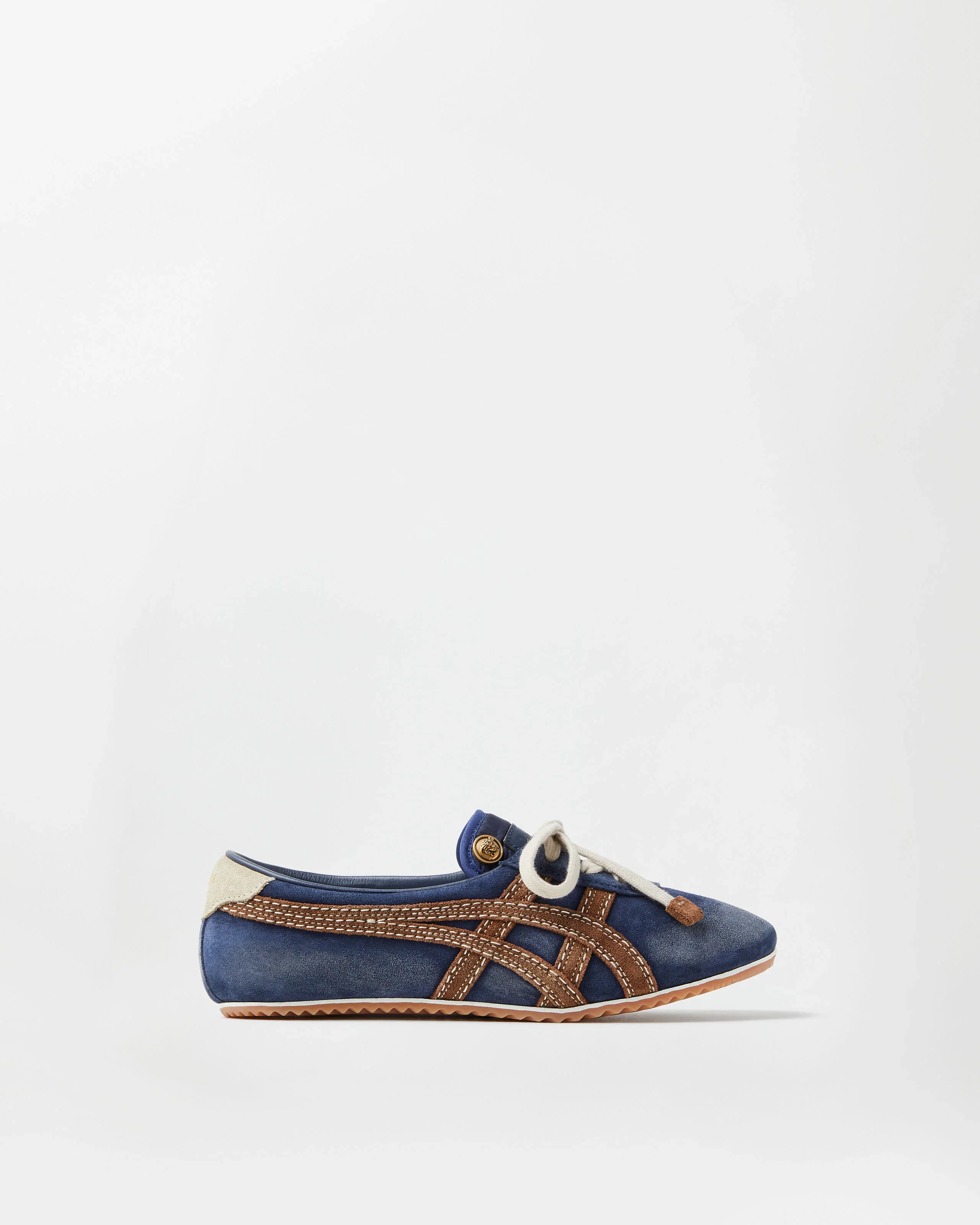 These iconic TAI-CHI Sakura sneakers are part of the Spring Summer 2026 collaboration with Onitsuka Tiger, representing a special fusion of Italian and Japanese craftsmanship. The pair is made from suede at the Onitsuka Tiger factory in Sanin Tottori, where the upper is treated with a washing process to achieve an aged effect. They feature double stitching on the Onitsuka Tiger stripes and a Medusa hardware as a studded embellishment on the tongue. - Medusa hardware - Versace Logo embossing on heel counter - Onitsuka Tiger embossed patch on tongue - Lace up - Round toe - Onitsuka Tiger x Versace dustbag and shoebox - Each pair is unique due to its artisanal quality and may vary slightly from the image shown - Outer composition: 100% Calf leather - Lining: 100% Cotton - Sole: 100% Rubber Size & Fit - Fit is small, we recommend taking half a size up - Footbed: Slim Item: 1025116-1A17741_2U2HJ