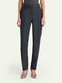 Versace tapered pants crafted from lightweight wool Midrise; sits high on the hip Fourpocket style Tailored fit Adjustable button cuffs Hook/zip fly; belt loops Wool/mohair Lining: Viscose Hand wash or dry clean Made in Italy