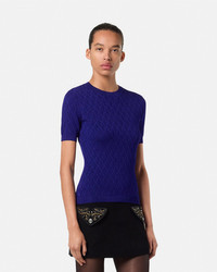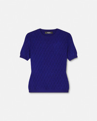 V Allover Jacquard Fitted Knit T-Shirt