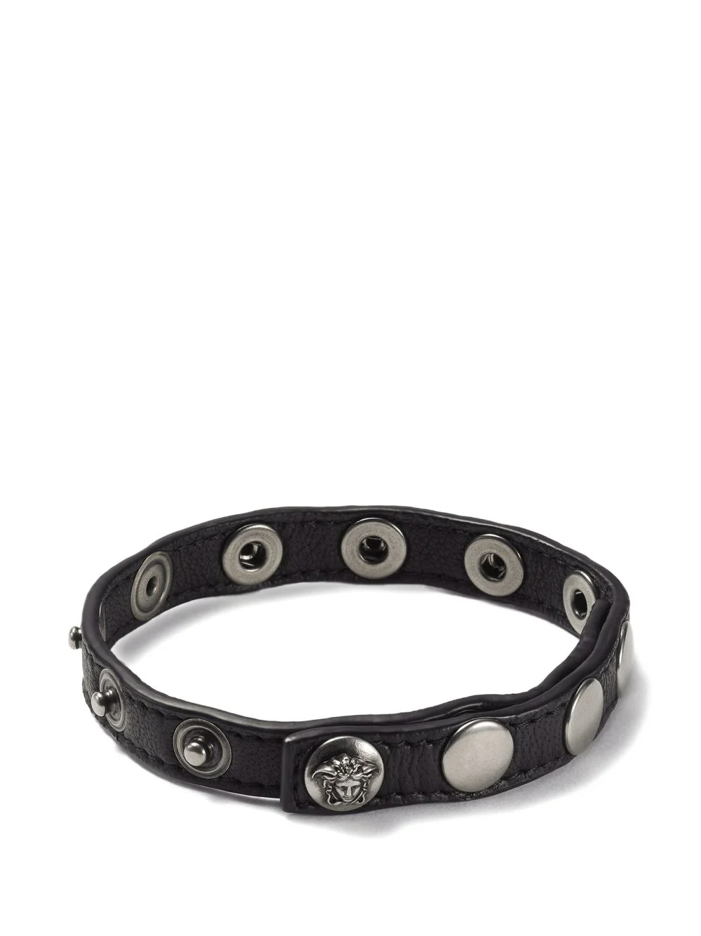 The Spike leather bracelet Highlights - Leather bracelet featuring stud details and a medusa snap closure. all - Versace - jewelry products are lead and nickel-free. all materials are hypoallergenic. - Medusa hardware - Snap button closure - Outer composition: 100% lambskin - Trim: 100% brass Imported