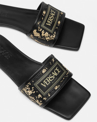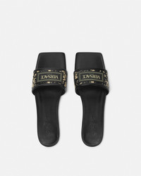 DETAILS Theia summer flat sandals in soft nappa leather with squared open toes and a block heel, featuring a raffia Barocco pattern, and a leather-embossed '90s Vintage Logo on the upper strap. - Barocco pattern - '90s Vintage Logo tag - Square toe - Block heel - Outer composition: 66% Viscose, 20% Polyester, 14% Cotton - Lining 1: 100% Lambskin - Lining 2: 100% Goat leather - Sole: 100% Calf leather - Trim: 100% Calf leather Item: 1016941-1A12026_6X600 SIZE & FIT - Heel: 0.4" / 1 cm - Footbed: regular - Fits true to size, take your normal size
