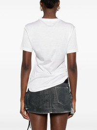 pin-drape T-shirt Highlights - White - Crew neck - Short sleeves - Ruched detailing Made in Italy Composition Polyester 100%, Silk 62%, Cotton 38% SIZE & FIT Model measurements Height 5 ft 10 in(1.78 m) Bust/Chest 31.49 in(80 cm) Hips 37 in(94 cm) Waist 23.62 in(60 cm) FittingInformation Designed for a slim fit that sits just away from the body offering a close yet comfortable fit Made from a midweight non-stretch fabric, this piece offers minimal elasticity when worn Washing instructions Hand Wash