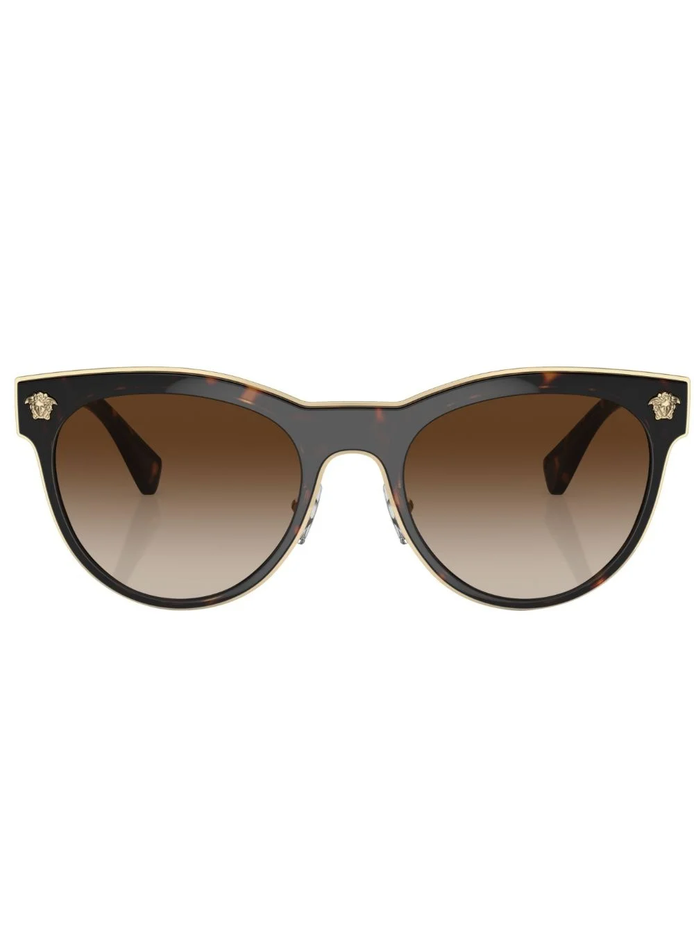 Medusa-plaque sunglasses Highlights - Havana brown - Polycarbonate - Tortoiseshell effect - Medusa plaque detail - Pantos frame - Gradient lenses - Uv-protective lenses - Nose pads - Logo print at the arm - Straight arms - Curved tips - Gold-tone hardware - These glasses come with a protective case. Made in Italy Composition Metal 100%, Polycarbonite 100% SIZE & FIT Measurement Bridge Width 0.78 in(2 cm) Lens Diameter 2.12 in(5.4 cm) Arm Length 5.7 in(14.5 cm)