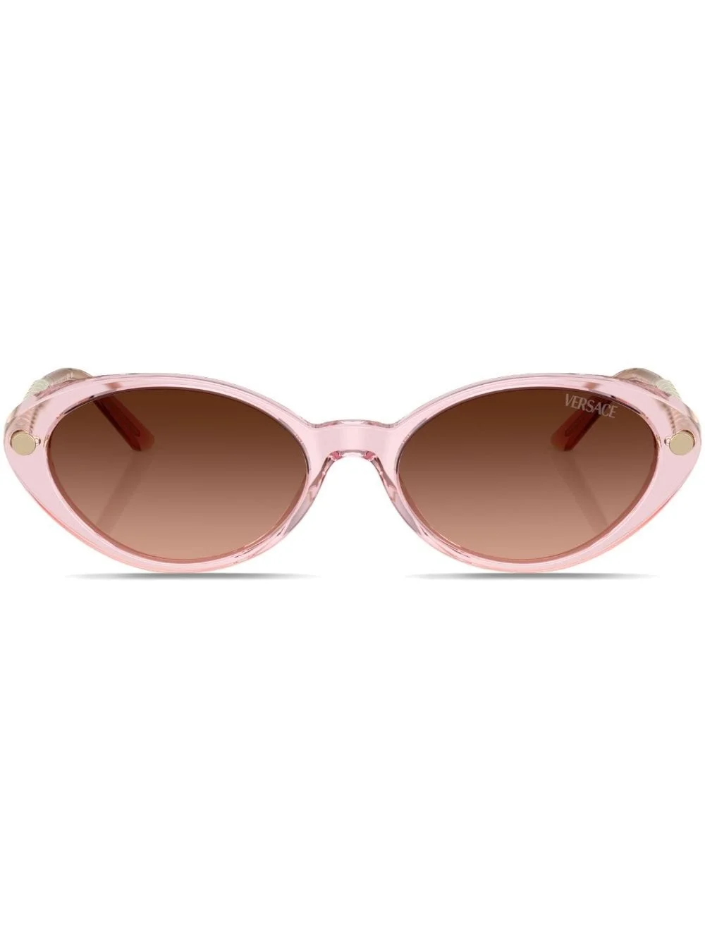 Greca-plaque oval-frame sunglasses Highlights - Light pink - Brown tinted lenses - Uv protection - Oval frame - Translucent design - Signature greca detailing - Straight arms - Curved tips - These glasses come with a protective case. Made in United States Composition Acetate 100% SIZE & FIT Measurement Arm Length 5.51 in(14 cm) Bridge Width 0.66 in(1.7 cm) Lens Diameter 2.12 in(5.4 cm)