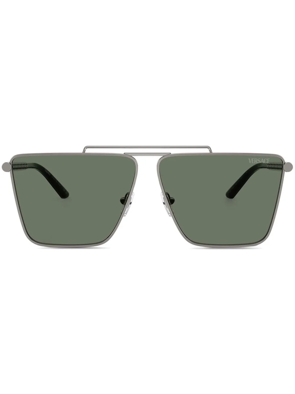Tubular Greca sunglasses Highlights - Silver-tone - Navigator frame - Signature greca detailing - Green tinted lenses - Nose pads - Sculpted arms - Curved tips - These glasses come with a protective case. Made in Italy Composition Metal 100%