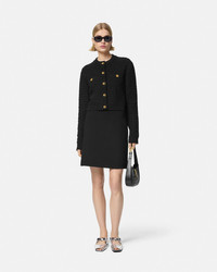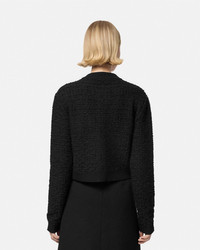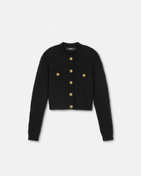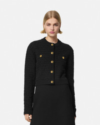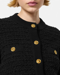 DETAILS This crewneck wool-knit cardigan jacket in a textured bouclé college tweed is finished with ribbed trims and accent Medusa hardware. - Medusa hardware - Long sleeves - Crewneck - Front button closure - Ribbed trims - Outer composition: 80% Pure virgin wool, 11% Nylon, 5% Cotton, 4% Mohair Item: 1011358-1A11290_1B000 SIZE & FIT - The model is 5'10" tall and wears size 38 IT