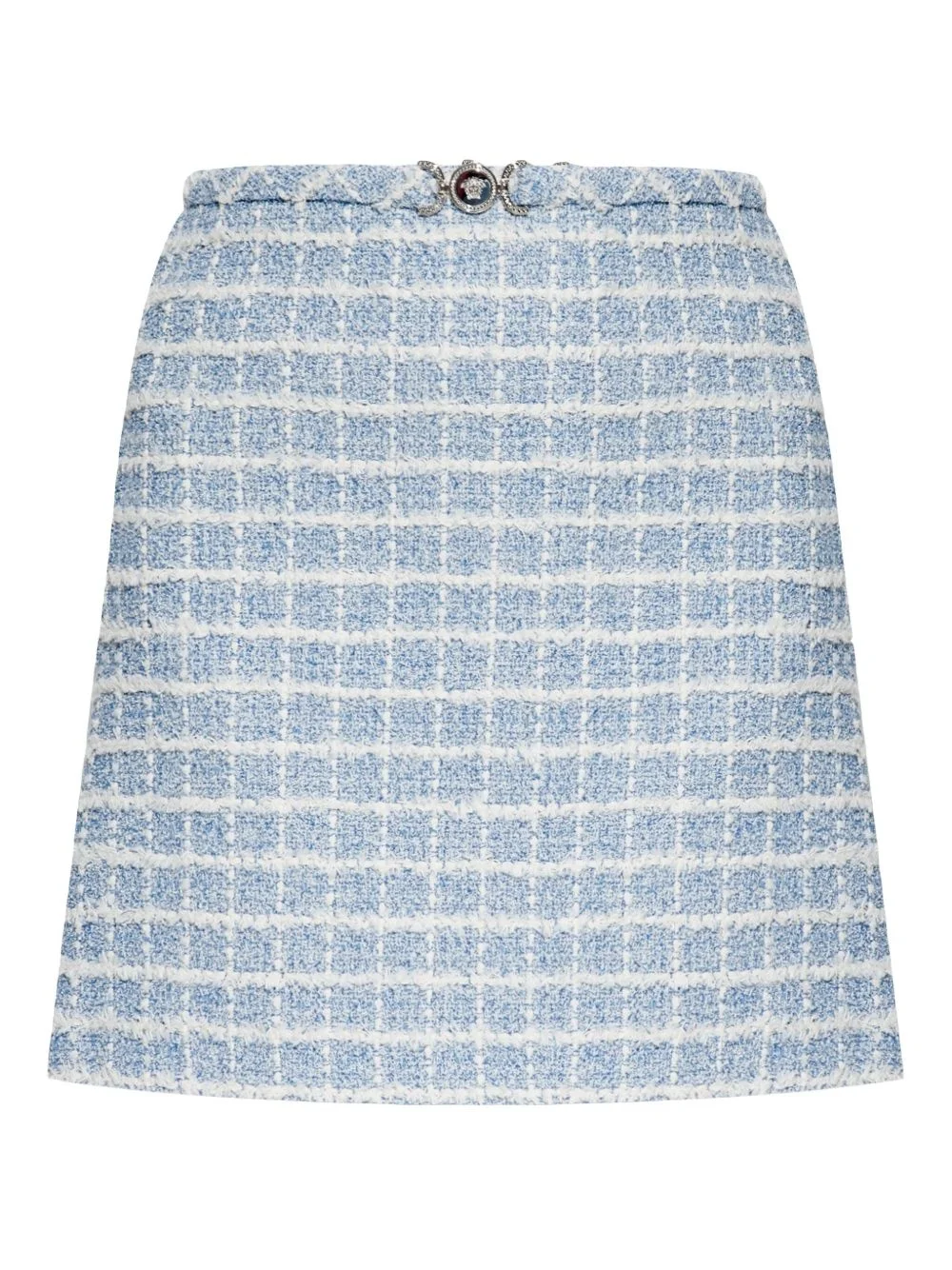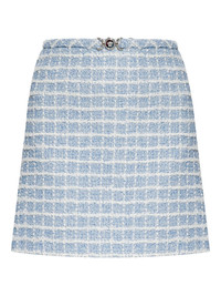 tweed mini skirt Highlights - Light blue - Concealed rear zip fastening - Medusa plaque detail Made in Italy Composition Outer: Cotton 54%, Nylon 20%, Viscose 14%, Polyester 6%, Metallized Polyester 4%, Acrylic 2% Lining: Cupro 100%