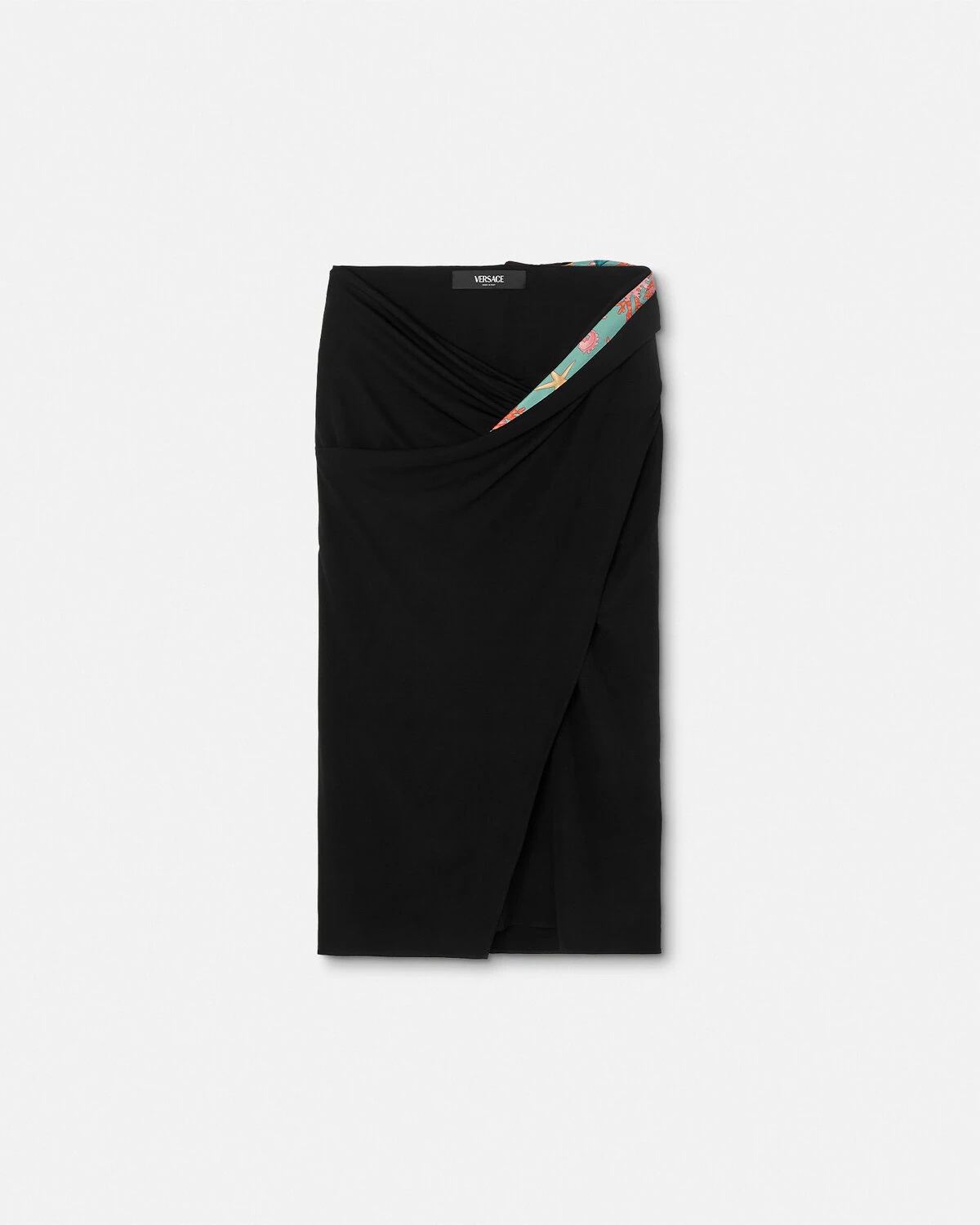 DETAILS A draped midi skirt in stretch crpe jersey featuring an Underwater Barocco print insert and a front slit - Underwater Barocco Print - Front slit - Concealed side zip closure - Outer composition 1: 95% Viscose, 5% Elastane - Outer composition 2: 100% Polyester - Lining: 95% Viscose, 5% Elastane Item: 1020825-1A14475_6BH80 SIZE & FIT - The model is 5'10" / 1.79 m tall and wears size 38 IT