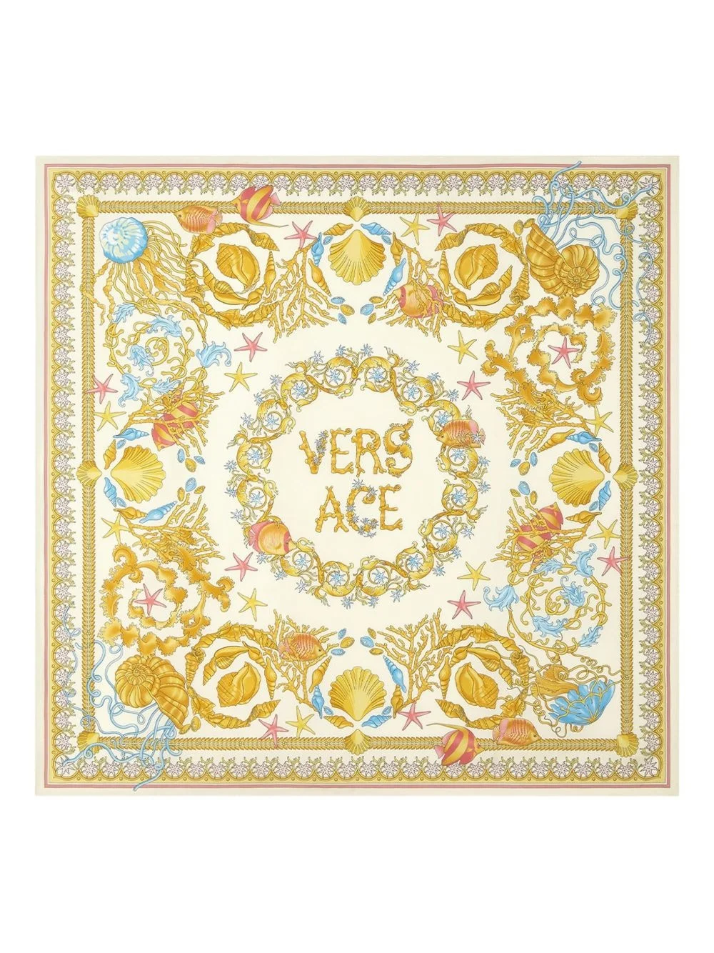 Underwater Barocco patterned scarf Highlights - Cream - Underwater barocco design - Gold-tone detailing - Logo lettering Made in Italy Composition Outer: Silk 100% SIZE & FIT Measurement LENGTH 35.43 in(90 cm) WIDTH 35.43 in(90 cm)