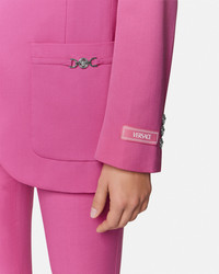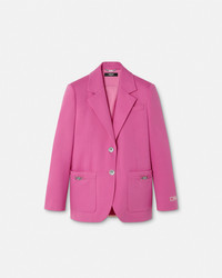 DETAILS A singlebreasted boxy blazer in stretch wool gabardine featuring accent Medusa 95 hardware on the front patch pockets and signature Medusa buttons A contrasting foulard Underwater Barocco silk twill panel details the back with seashell coral and starfish motifs A jacquard tailoring label details the sleeve - Underwater Barocco print - Medusa '95 hardware - Medusa hardware - Tailoring label - Long sleeves - Notched collar - Front button closure - Front patch pockets - Chest welt pocket - Buttoned cuffs - Outer composition 1: 98% Pure virgin wool, 2% Elastane - Outer composition 2: 100% Silk - Lining: 100% Cupro Item: 1020114-1A15260_1PV90 SIZE & FIT - The model is 5'10" / 1.79 m tall and wears size 38 IT