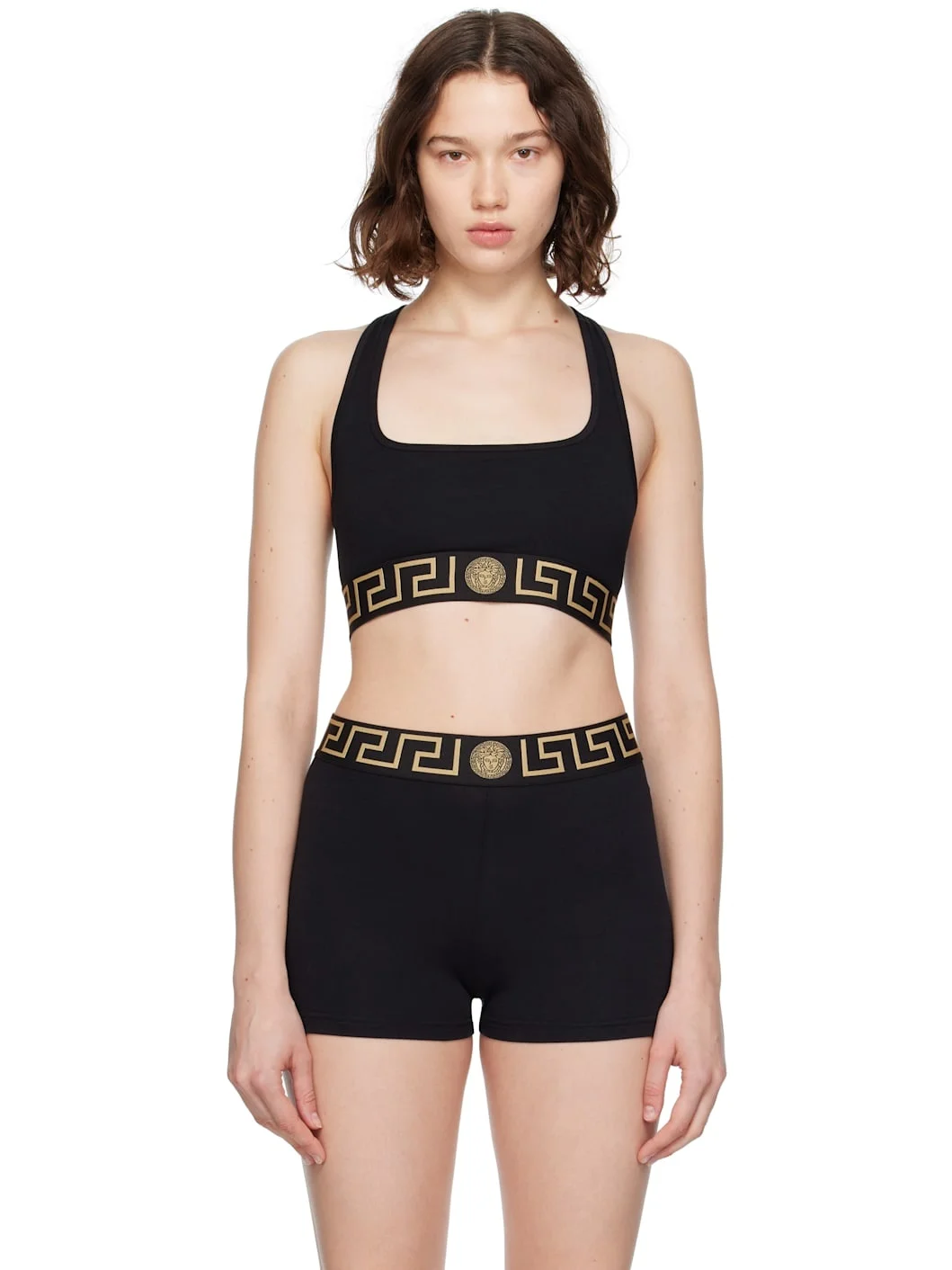 Stretch cotton jersey bra. · Square neck · Medusa at logo-woven elasticized hem · Racer back Supplier color: Black Body: 94% cotton, 6% elastane. Trim: 82% polyester, 9% polyamide, 9% elastane. Lining: 94% cotton, 6% elastane. Made in Bosnia And Herzegowina 252404F073003